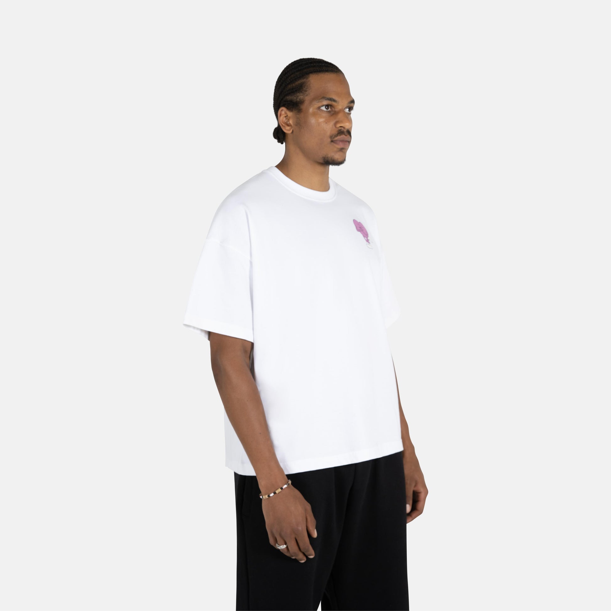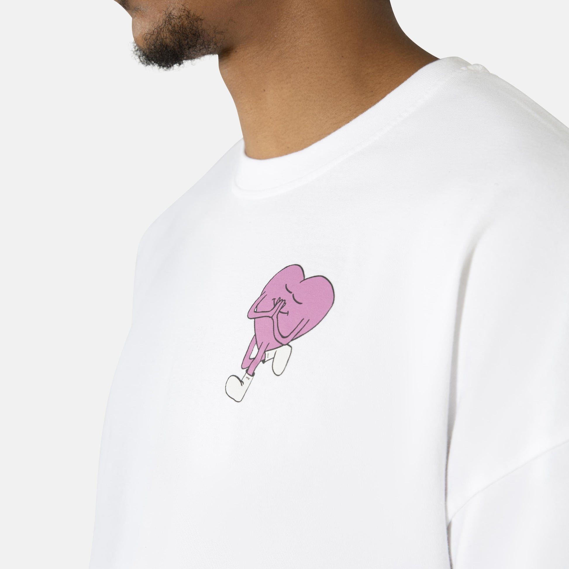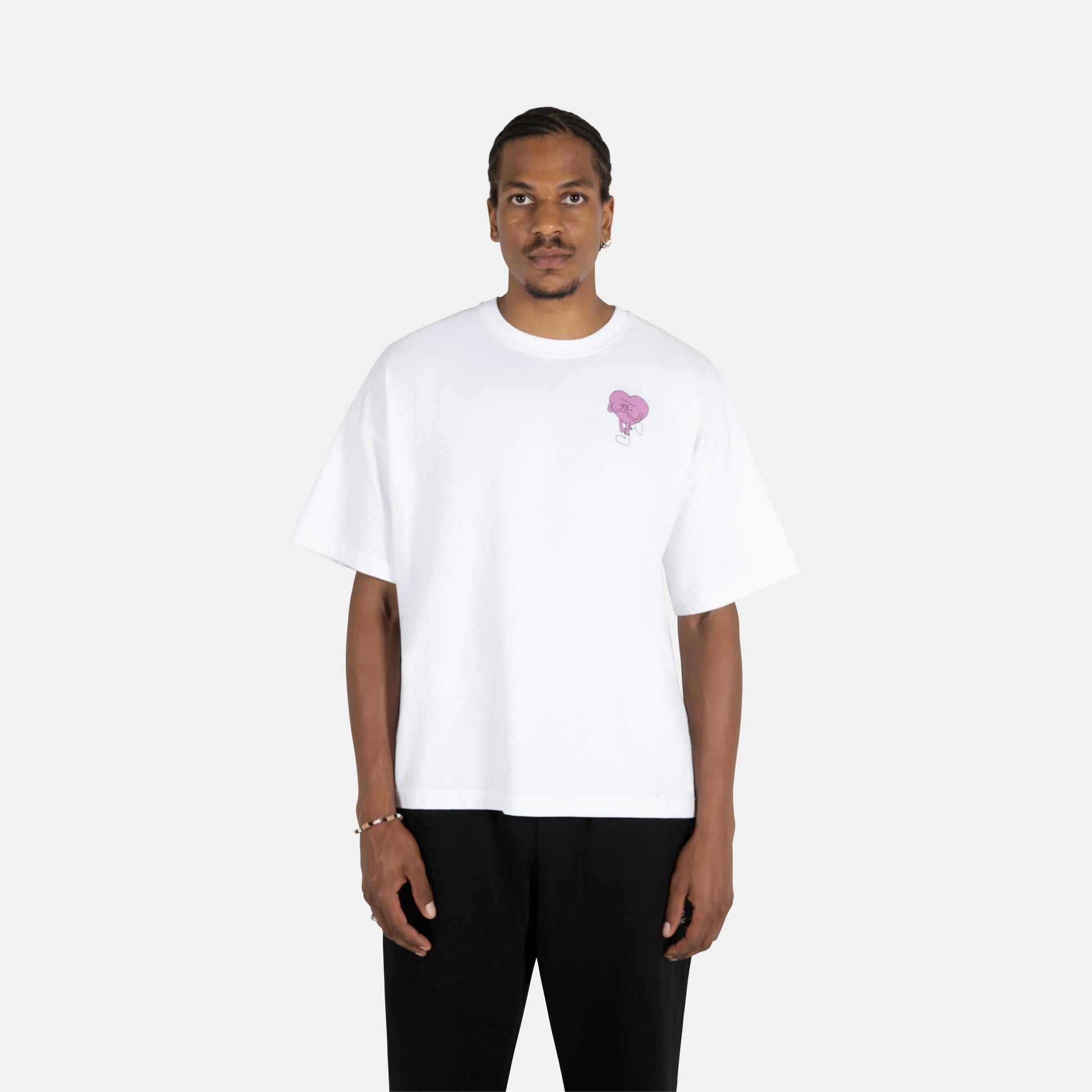 Clean canvas, clear message. The 'Keep Chasing' T, now in white, pairs a powerful statement with a premium feel. Made from heavyweight organic cotton, its oversized silhouette ensures all-day comfort and style. The tee features a subtle heart on the front and a bold reminder on the back to pursue what your heart desires.